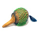 The shekere is a West African percussion instrument consisting of a dried gourd with a woven netting of beads covering the gourd.