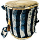 Brekete is a closed double-headed cylindrical snare-drum. It is made from one piece of wood and has a snare on one side. Both membranes are stretched across the heads of the drum with laced ropes. The brekete drum bears decorative elements and has a cloth wound around it, like the Dagomba. The brekete is approximately 13 inches long and has a diameter of 13 inches. It has a whole bass tone and is ideally suited to accompany dances.